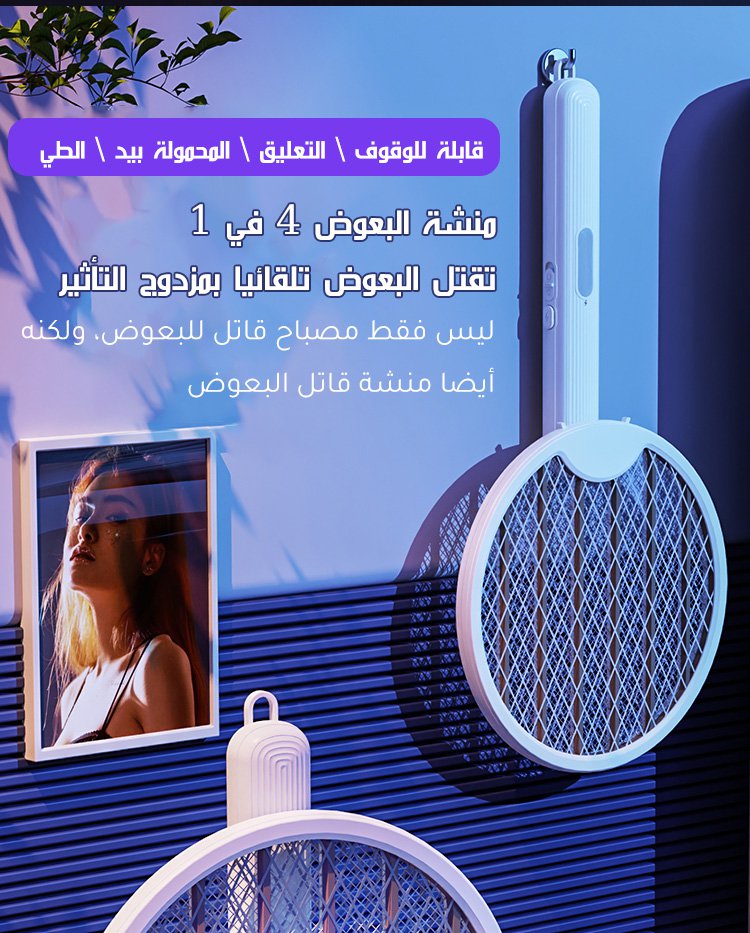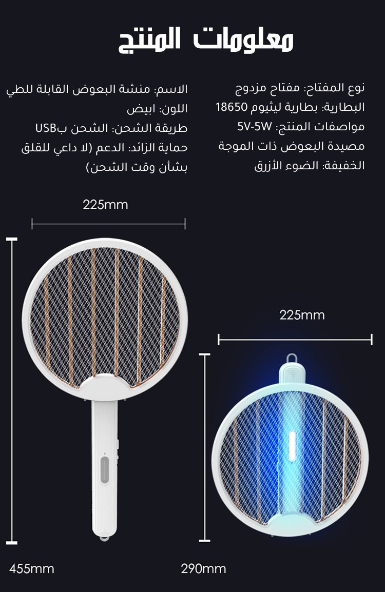 منشة البعوض الكهربائية 4 في 1 القابلة للطي